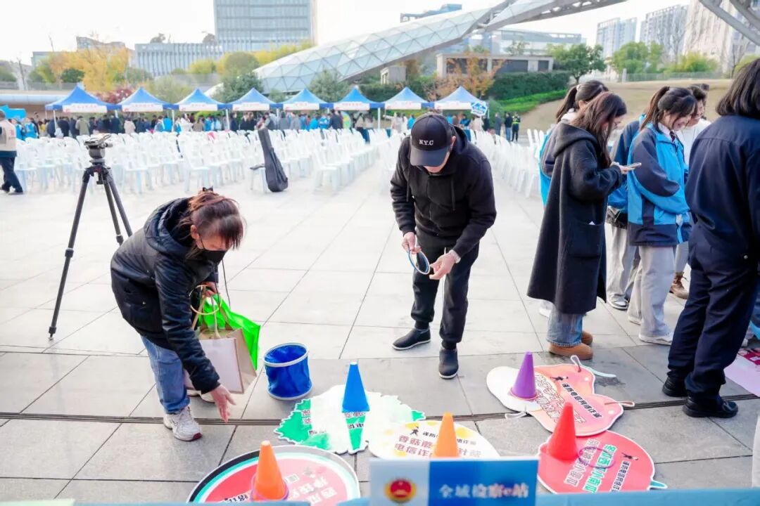 12月3日下午,临安区人民检察院前往临安人民广场参与“法治市集”活动。现场有许多趣味游戏,临安检察摊位上开设的“法治套圈”游戏吸引了很多群众前来体验。参与者需先回答与宪法、民法典等相关的基础法律问题,答对即可获得套圈资格并赢取“法治大礼包”。