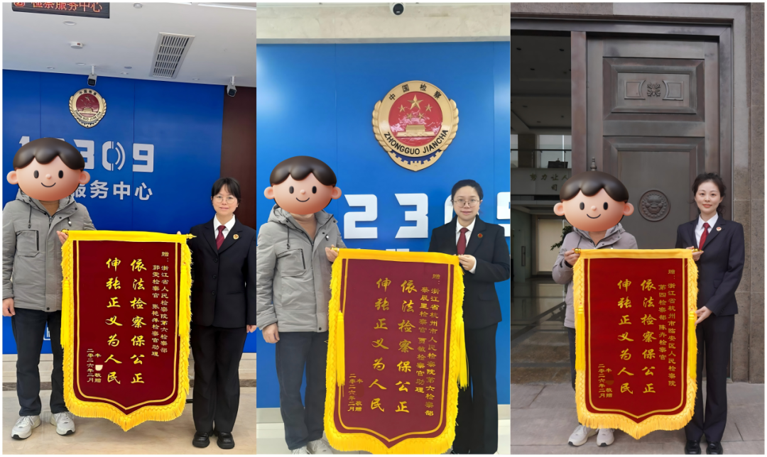 2026年2月27日,丰某某将三面印有“依法检察保公正,伸张正义为人民”的锦旗,分别送至浙江省人民检察院、杭州市人民检察院、临安区人民检察院,对检察机关依法履行法律监督职责表示感谢。